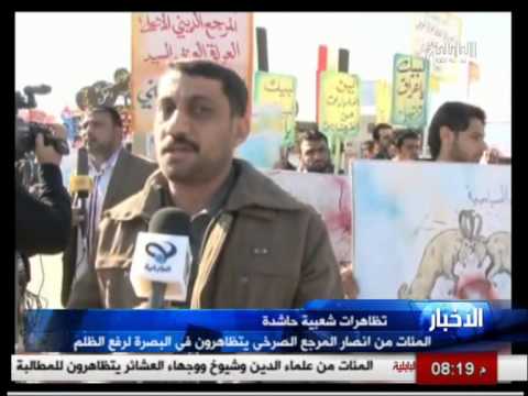 قناة البابلية / تظاهرات شعبية حاشدة لانصار المرجع العراقي السيد الصرخي في عموم محافظات العراق تندد بانعدام الخدمات 28 / 12/ 2012